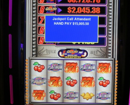 Casino News, NewsA slot machine suspends its operations after a lucky gambler hit a $15,000 jackpot. Attendants respond to such wins to make sure the terminal is functioning properly and to also arrange the proper completing of IRS tax documents. (Image: Shutterstock)